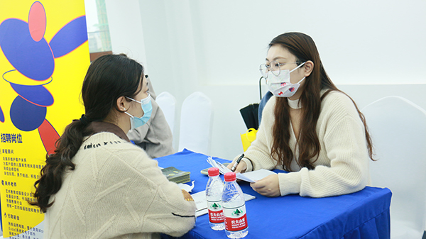 11月22日下午,“设计人生,职赢未来”设计艺术学院2023届毕业生专场招聘会在产教融合楼二期一楼大厅举行。无锡纵横文化有限公司、无锡六空间信息科技有限公司、无锡锦华装饰工程有限公司等20多家企业受邀参加招聘会,提供了包括创意设计、游戏动画设计、视觉设计、室内设计、影视后期、美术教师等专业对口性强的岗位,学院2023届应届毕业生及部分非应届在校生参加了此次招聘会,达到了预期成效。