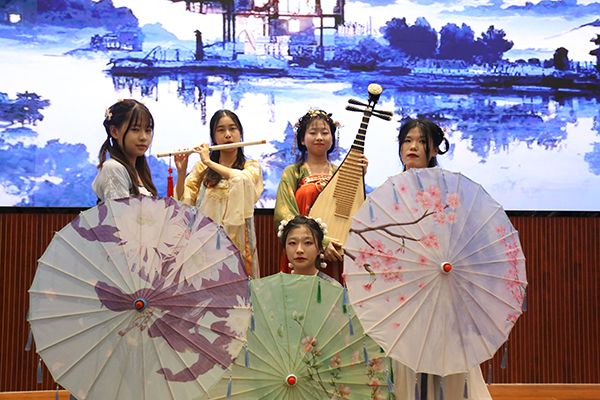 晚会由民乐舞蹈《青花瓷》开场,由民族器乐协会、华之韵汉文社成员演绎的笛子、琵琶、古典舞共同演绎,丝竹管弦、轻歌曼舞中将整台晚会带入了江南的风情韵致中。