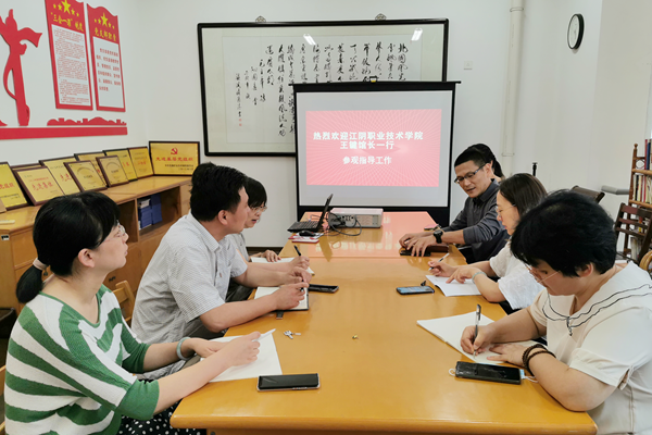 6月17日,江阴职业技术学院图书馆馆长王键及图书馆业务部门主任一行5人来我校图书馆参观交流,我校图书馆负责人接待了来宾,相关部门主任参加了座谈。
