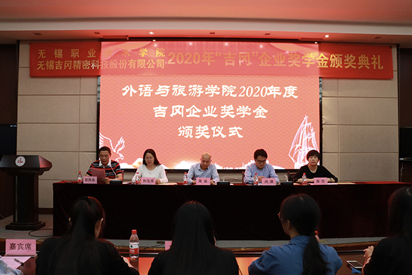 5月11日下午,2020年度幻影网页版“吉冈”企业奖学金颁奖典礼在我校国际交流中心二楼报告厅隆重举行。无锡吉冈精密科技股份有限公司总经理周延、副校长杨雪琴、学生工作处处长徐悦、外语与旅游学院院长冯臻、吉冈公司行政部负责人、学院相关负责老师及全体获奖同学出席了本次颁奖典礼。颁奖典礼由外语与旅游学院党总支书记郭再泉主持。