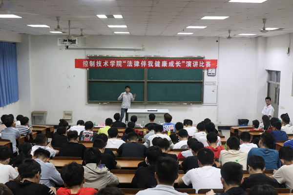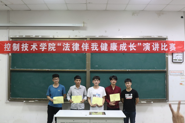 5月16日晚19:00,控制技术学院“法律伴我健康成长”演讲比赛决赛在至善楼E401举行,控制技术学院分团委庞军老师和分团委学生会主席团应邀担任决赛评委。