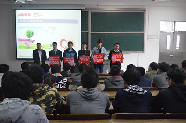 迅达集团是全球领先的电梯和自动扶梯供应商之一,为各种类型的建筑提供设计、安装、保养和更新交通运输系统的业务,近年来专注于弘扬社会主义核心价值观,倡导热情、雄心和协作精神。助学仪式上,控制学院共有5名品学兼优的学子接受企业资助,受助同学表达感激之余,也表示将努力学习,学有所成,学有所获,不负企业重托,将来更好地回报社会。