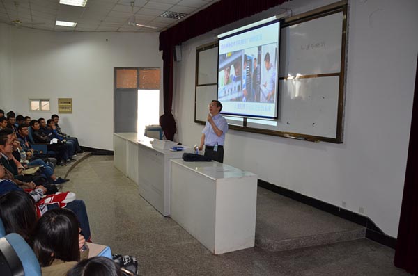 洽谈结束后,奚祖强先生又兴致勃勃的来到星期二讲堂给物联网技术学院的本专科生进行了主题为“IT行业的发展和对人才的要求”的讲座。讲座中,奚祖强先生运用了视频及多媒体生动的介绍了IT行业新技术的发展以及本行业对人才的强烈需求。同学们还就自己在学习中的困惑及行业的发展趋势向奚祖强先生提问,奚祖强先生一一进行了精彩解答。(肖颖)