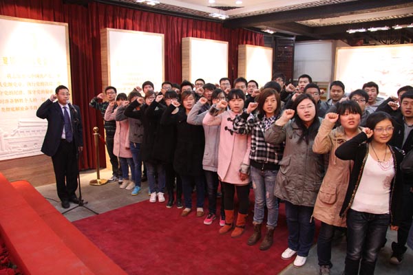 全体新党员观看了专题片《誓言颂》,通过回顾中国各个时期党员英烈的形象,经历心灵的洗礼,花树洋老师带领全体新党员在党旗下进行入党宣誓。党建基地吴臻翔书记为大家介绍了这个红色文化中心的历史变迁,随后在新中国成立后无锡第一面国旗升起的地方,举行了庄严的升旗仪式。党员们还参观了秦邦宪故居。